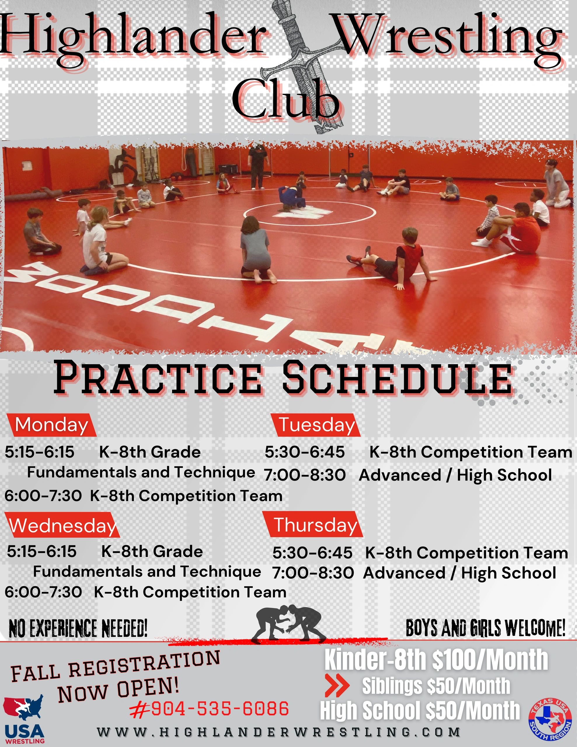 Highlander Wrestling Club (HWC) is a USA Wrestling Sanctioned Club that operates to bring wrestling to The Woodlands Community. This club is for all feeders of The Woodlands High School. We take all ages between kindergarten and 8th grade. Boys and Girls are welcome to join us on the mat!